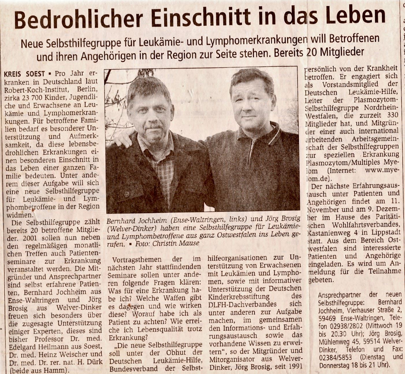 05. Oktober 2020: Zeitungsartikel 20 Jahre SHG
